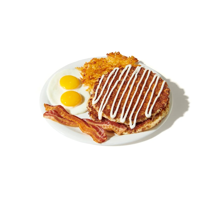 One of the standout features at Denny's is their enticing Classic Slams. A fan favorite, the Red, White and Berry Pancake Slam®, perfectly illustrates what Denny's does best — crafting indulgent creations that are as pleasing to the eye as they are to the palette. Fluffy buttermilk blueberry pancakes accompanied by fresh strawberries and luscious cream cheese icing, served alongside two eggs cooked your way and crispy hash browns, all for just US$12.49. It's a breakfast dream come true.